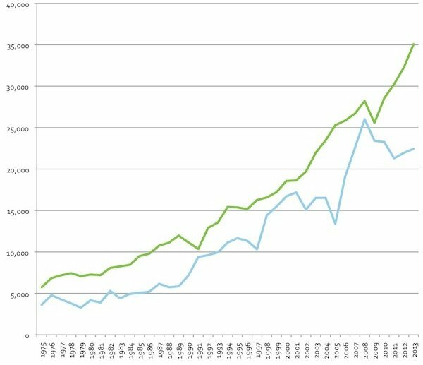 A perspective view from U.S. Design Patent No. D576,513. The drawings in a design patent application should contain a sufficient number of views to disclose the complete appearance of the design claimed. This generally requires at least six separate views (or angles), which should include drawings of the front, back, top, bottom, left and right. These six views should be considered essential unless one or more would be identical. For example, with a typical golf ball it would be identical from every angle so only one view would be required. A perspective view, which shows the invention in context showing more than one side or angle at a time are suggested by the Patent Office, but not required. A perspective view is shown to the right. Generally speaking design patents are viewed as weaker than utility patents, but that is not really the entire story. A design patent protects only the way something looks, not the way it functions. That is why it is frequently said that design patents are weaker than utility patents. It is better, however, to say that you need to be fully well aware of the protection you are going to obtain with a design patent. If you need protection for the way your invention operates then a design patent is not the right form of protection. But for many products what makes them desirable is the way they appear, not necessarily the way they function. In that situation a design patent is certainly appropriate. It is also appropriate to file a design patent that seeks protection on the way something looks simultaneously with filing a utility patent application (i.e., provisional or non-provisional patent application) that seeks to ultimately protect functionality. Further, obtaining a number of design patents on various alternative designs can and does provide a nice portfolio. Design patents fell out of favor in the past because they were promoted by non-attorney services who did not explain the difference between a design patent and a utility patent. Inventors were funneled toward a design patent in virtually all instances even when what they needed was a utility patent application. Thus, design patents received a bad name. That was never appropriate because it wasn’t any problem with design patents, but rather people expecting to get more from a design patent than the rights granted would reasonably allow. In 2008 the Federal Circuit changed the design patent infringement test (see here and here) making it one about substantial similarity, which made it easier (relatively speaking) to prove design patent infringement. Cases since have shown mixed results, but the law is certainly more favorable to the design patent owner and the uncertainty is actually a benefit for the patent owner because infringers cannot merely ignore design rights. Further, a design patent may give you all you need to get infringing products removed from online marketplaces such as eBay or Amazon.com. Look for a forthcoming article on that topic specifically. Design patents are definitely growing in popularity, as they should be. The chart below shows design patent activity at the United States Patent & Trademark Office from 1975 to 2013. The only question I have is why aren’t even more design patent applications be filed? Design patents are relatively cheap to obtain (at least compared to utility patent rights), they are easy to obtain and they last for 14 years from issue without the need to make additional maintenance fee payments. The number of design patent applications filed, while on the rise, should be much higher.